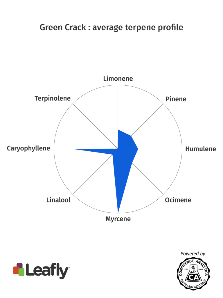Green Crack is a classic THC-dominant strain that many believe descends from the Dutch coffeeshop favorite, Skunk #1. It often expresses itself with earthy flavors and sweet citrus accents, produced by an abundance of myrcene and caryophyllene in conjunction with other terpenes.